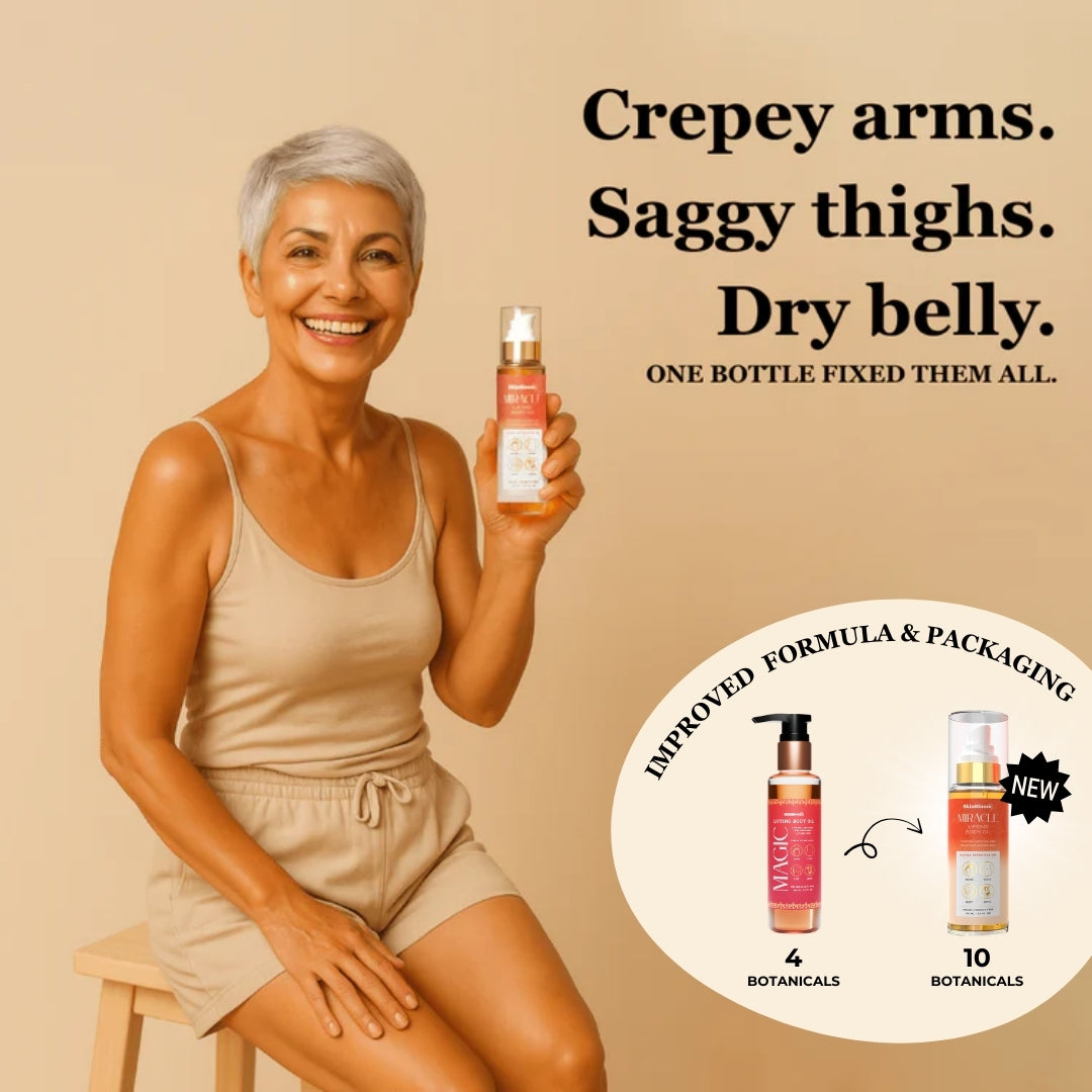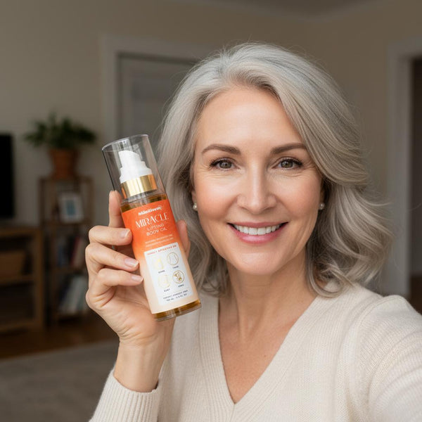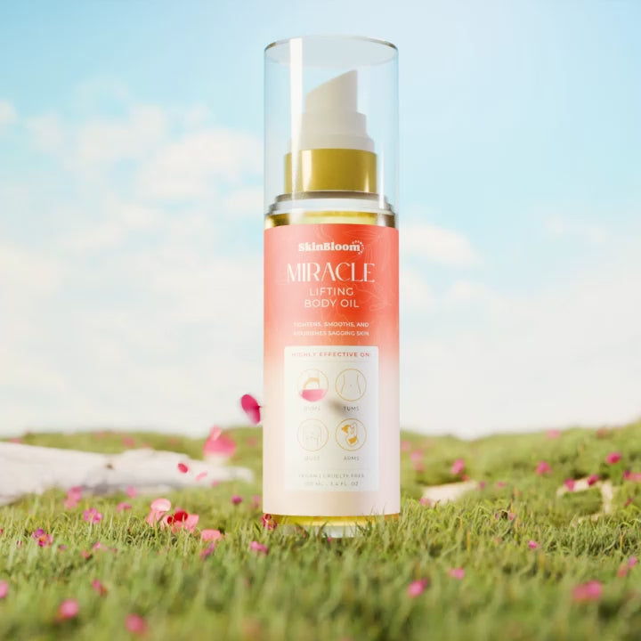 Meet Miracle Lifting Body Oil, the next generation in age-defying body care. With a science-backed blend of 10 powerful botanicals, this fast-absorbing oil goes beyond hydration — it helps restore firmness, glow, and strength. No stickiness, no residue, just silky, radiant skin.